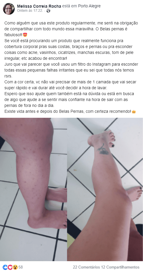 Sim! O Spray Belas Pernas tem alta cobertura e cobre vasinhos, varizes, contusões, cicatrizes, manchas da idade, sardas, tatuagens, estrias e muito mais.